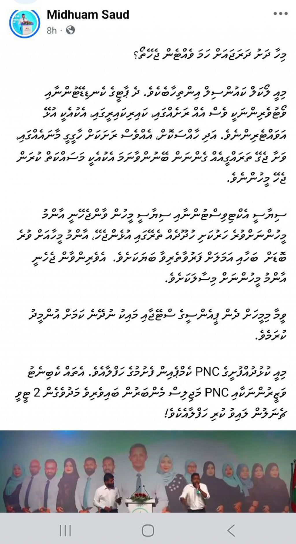ކުރިއަށް އޮތް ލޯކަލް ކައުންސިލް އިންތިހާބާއި އަންހެނުން ތަރައްގީއަށް މަސައްކަތްކުރާ ކޮމެޓީގެ ޕީއެންސީގެ ކެންޑިޑޭޓުންގެ ކެމްޕެއިން ލޯންޗުކުރަން ކުޅުދުއްފުށީގައި ބޭއްވި ބޮޑު ޖަލްސާގައި އެމްސީކުރައްވަން ހުންނެވި ފެނަކަ މެނޭޖަރު އަހުމަދު މުހައްމަދު ދެއްކެވި ލަދުވެތި ވާހަކައަށް ފާޑުކިޔުން އަމާޒުވެއްޖެ އެވެ.