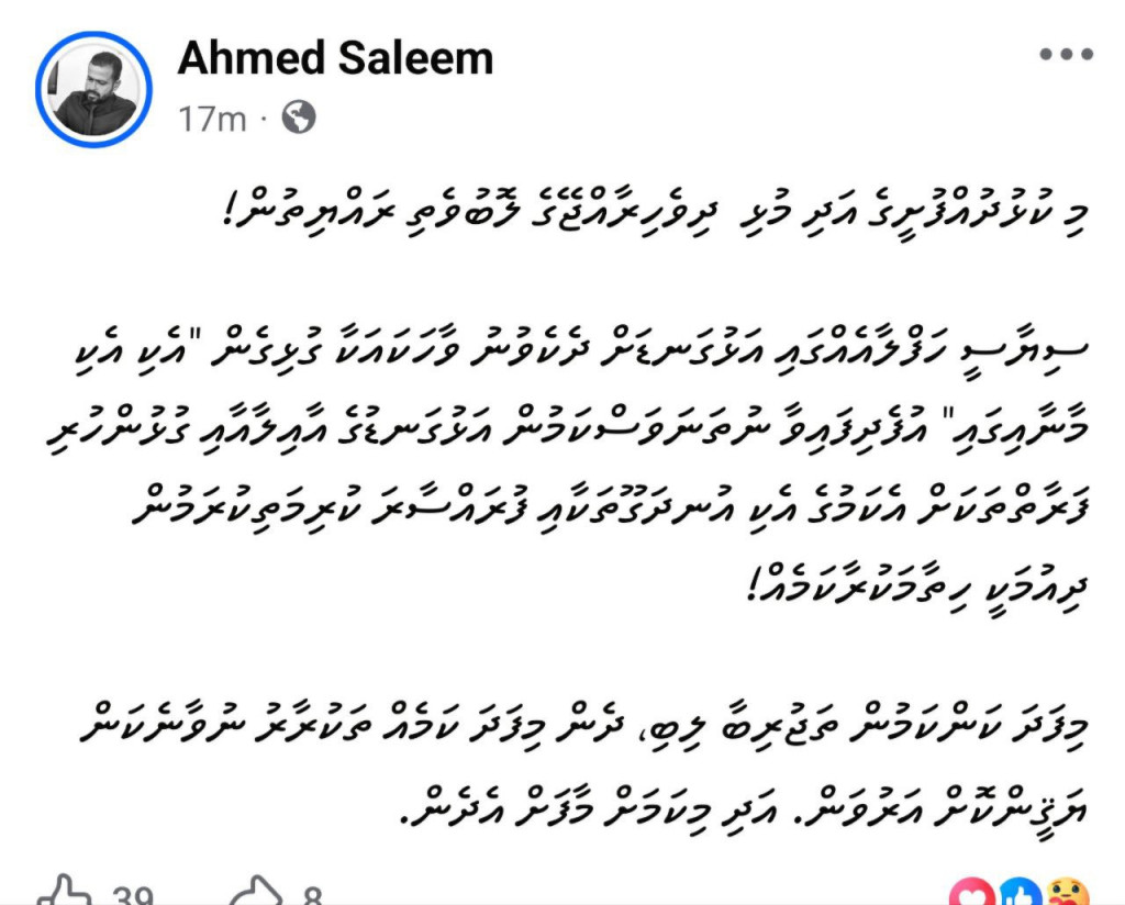 އަހުމަދުގެ އެވާހަކަތަކަށް ވަރަށް ބޮޑަށް އާންމުންގެ ނުރުހުން އަމާޒުވެފައިވަނިކޮށް މިއަދު އޭނާ ސޯޝަލް މީޑިއާގައި ކުރެއްވި ޕޯސްޓެއްގައި ވިދާޅުވީ، އެ ވާހަކައާ ގުޅިގެން އެކިއެކި މާނާގައި އުފެދިފައިވާ ނުތަނަވަސްކަމުން އޭނާގެ އާއިލާ އާއި ގުޅުން ހުރި ފަރާތްތަކަށް އެކަމުގެ އެކި އުނދަގޫތަކާއި ފުރައްސާރަ ކުރިމަތިވަމުންދާ ކަމަށެވެ. އަދި އެއީ ހިތާމަ ހުރިކަމެއްގައިވެސް އަހުމަދު ވިދާޅުވި އެވެ.
