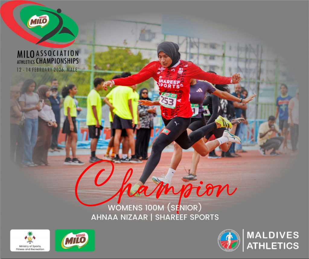 އަންހެނުންގެ ސީނިއާ 100 މީޓަރު ދުވުމުން ރާއްޖޭގެ އެންމެ ބާރު އެއް އަންހެން ދުވުންތެރިޔާ ކުޅުދުއްފުއްޓަށް ނިސްބަތްވާ ޝަރީފް ސްޕޯޓްސްގެ އަހްނާ ނިޒާރު ރަން މެޑަލް ހޯދިއިރު ސީނިއާ ފިރިހެނުންގެ 1500 މީޓަރާއި 800 މީޓަރު ދުވުމުން ދިވެހި ސިފައިންގެ ކުލަބުގެ ހުސެއިން ރިޒާ ވެސް ވަނީ ރަން މެޑަލް ހޯދާފަ އެވެ.