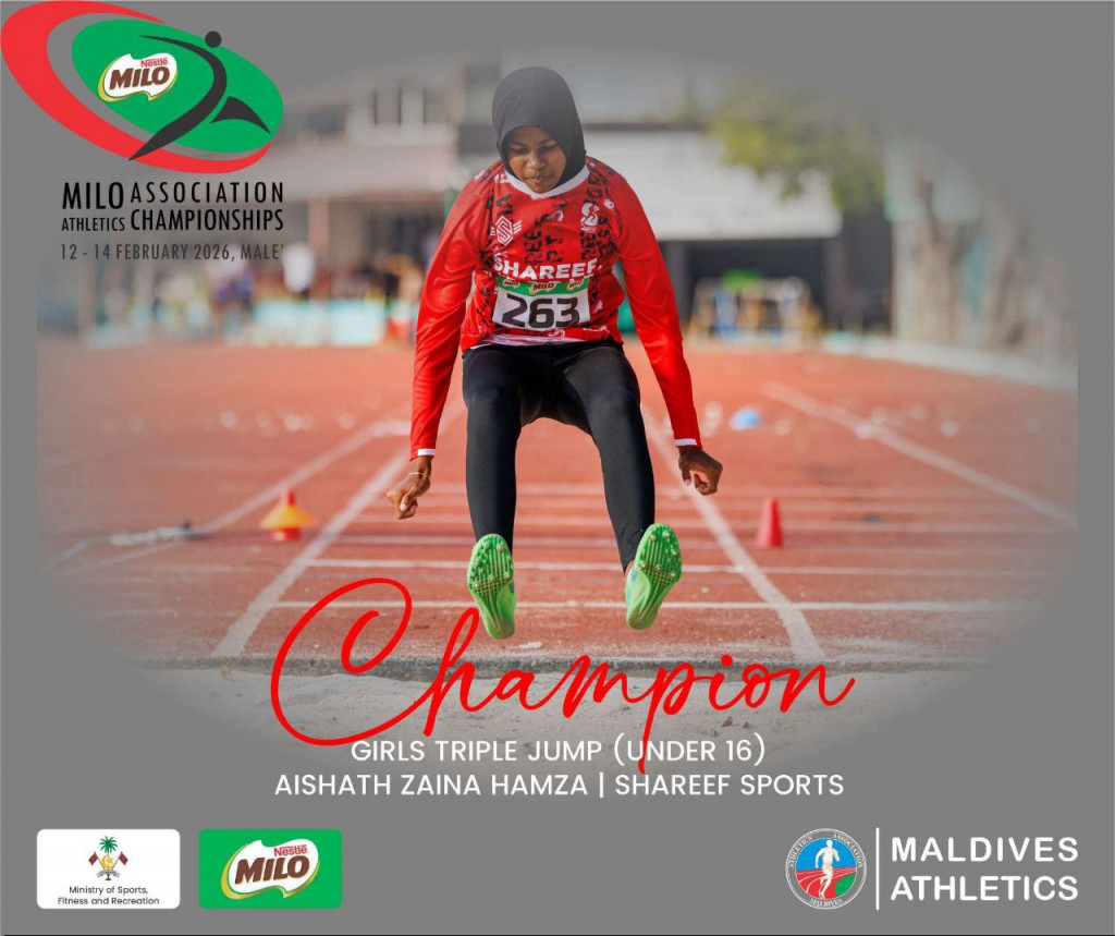 ޝަރީފް ސްޕޯޓްސްގެ ސިޒާން އަލީ ރިޒާ ސީނިއާ ފިރިހެނުންގެ ލޯންގް ޖަމްޕުން ރަން މެޑަލް ހޯދިއިރު 16 އަހަރުން ދަށުގެ އަންހެން ކުދިންގެ ޓްރިޕަލް ޖަމްޕުން އައިޝަތު ޒައިނާ ހަމްޒާ ވަނީ ރަން މެޑަލް ހޯދާފަ އެވެ.