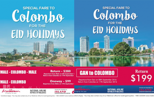އީދު ބަންދާ ދިމާކޮށް މޯލްޑިވިއަން އިން ކޮލޮމްބޯއަށް ހާއްސަ ދަތުރުތަކެއް