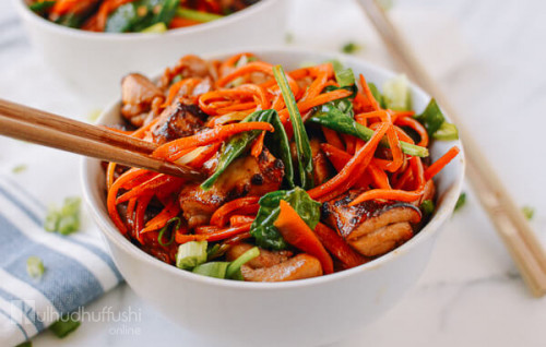 ކެރެޓް ނޫޑްލްސް ވިތް ޗިކަން އެންޑް ޕީނަޓް ސޯސް